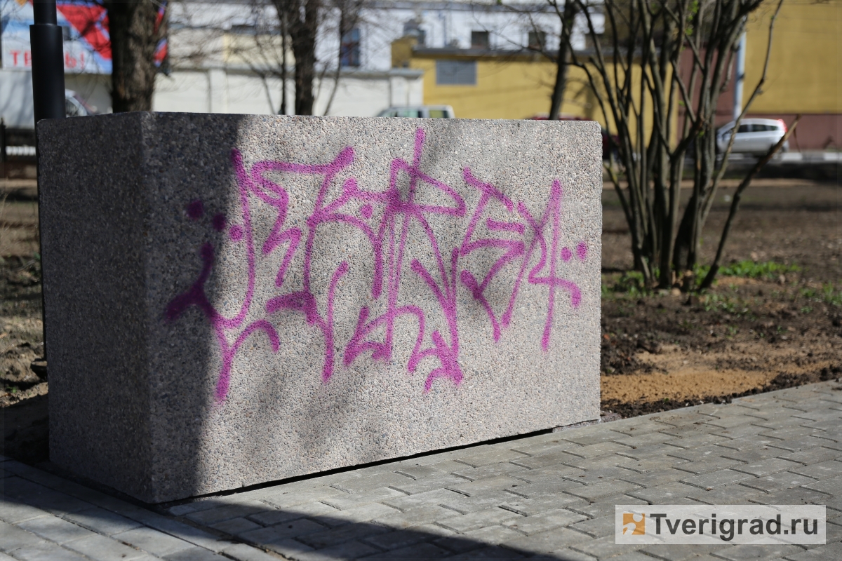 В Твери продолжается благоустройство сквера Казакова. Однако в начале мая неизвестные лица внесли свой сомнительный «вклад» в украшение общественной зоны, оставив граффити на новой цветочнице из декоративного бетона. В преддверии Дня Победы изготовителем малой архитектурной формы – АО «ТЖБИ-4» были приняты оперативные меры по ликвидации последствий акта вандализма.