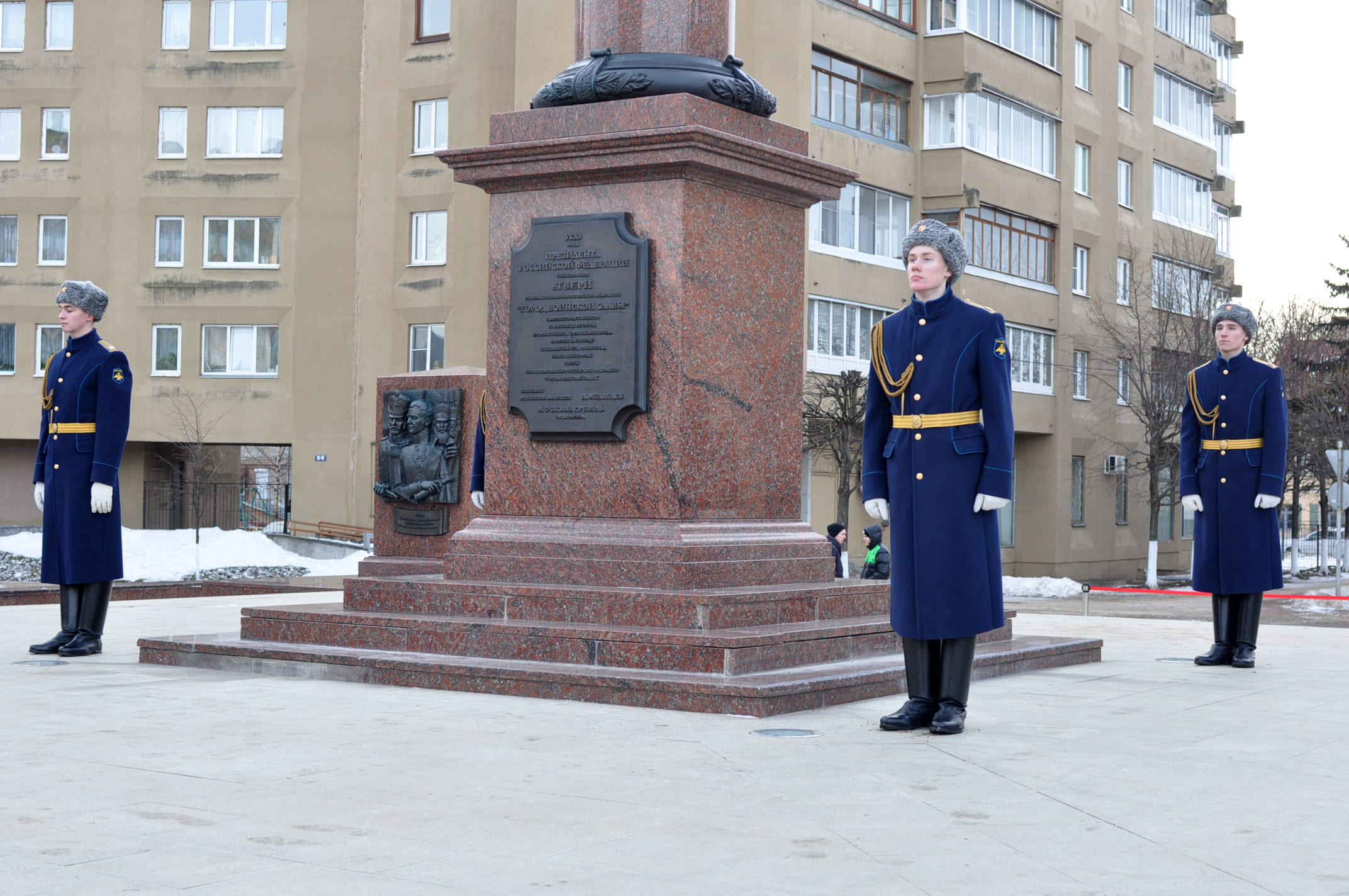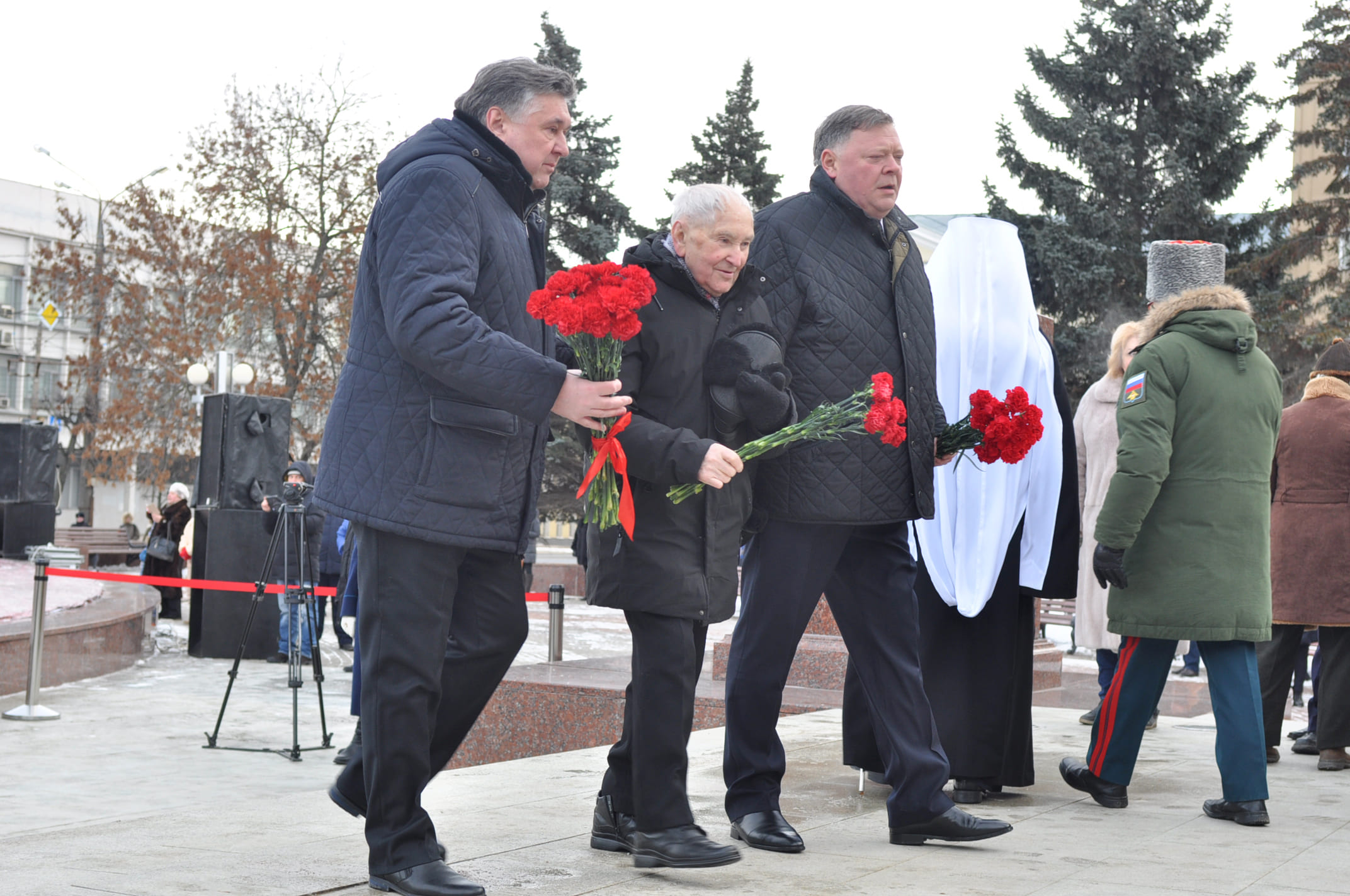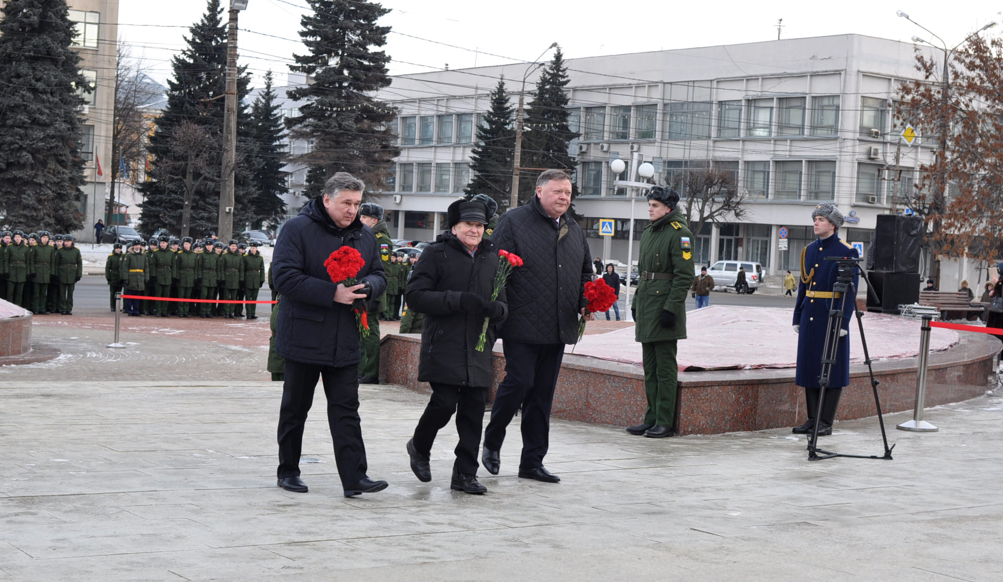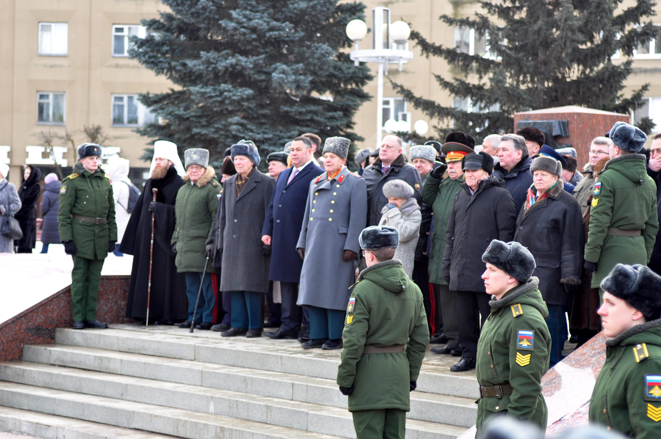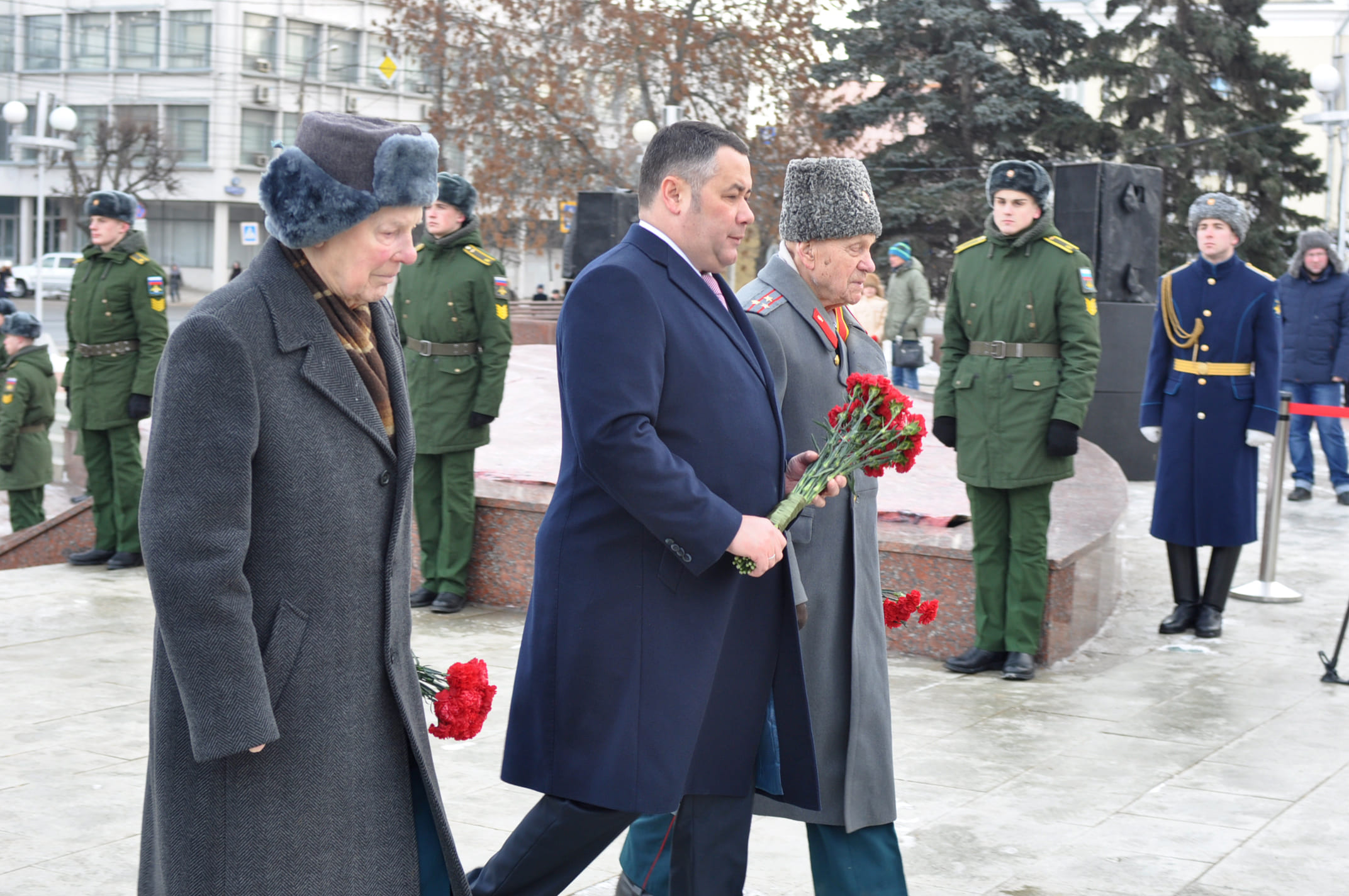 На площади у стелы «Город воинской Славы» состоялось торжественное мероприятие, в котором приняли участие ветераны Великой Отечественной войны, Губернатор Тверской области Игорь Руденя, председатель Законодательного Собрания Тверской области Сергей Голубев, депутаты ГосДумы РФ Сергей Веремеенко и Светлана Максимова, Глава Твери Алексей Огоньков, депутаты Тверской городской Думы, военнослужащие, школьники и студенты.