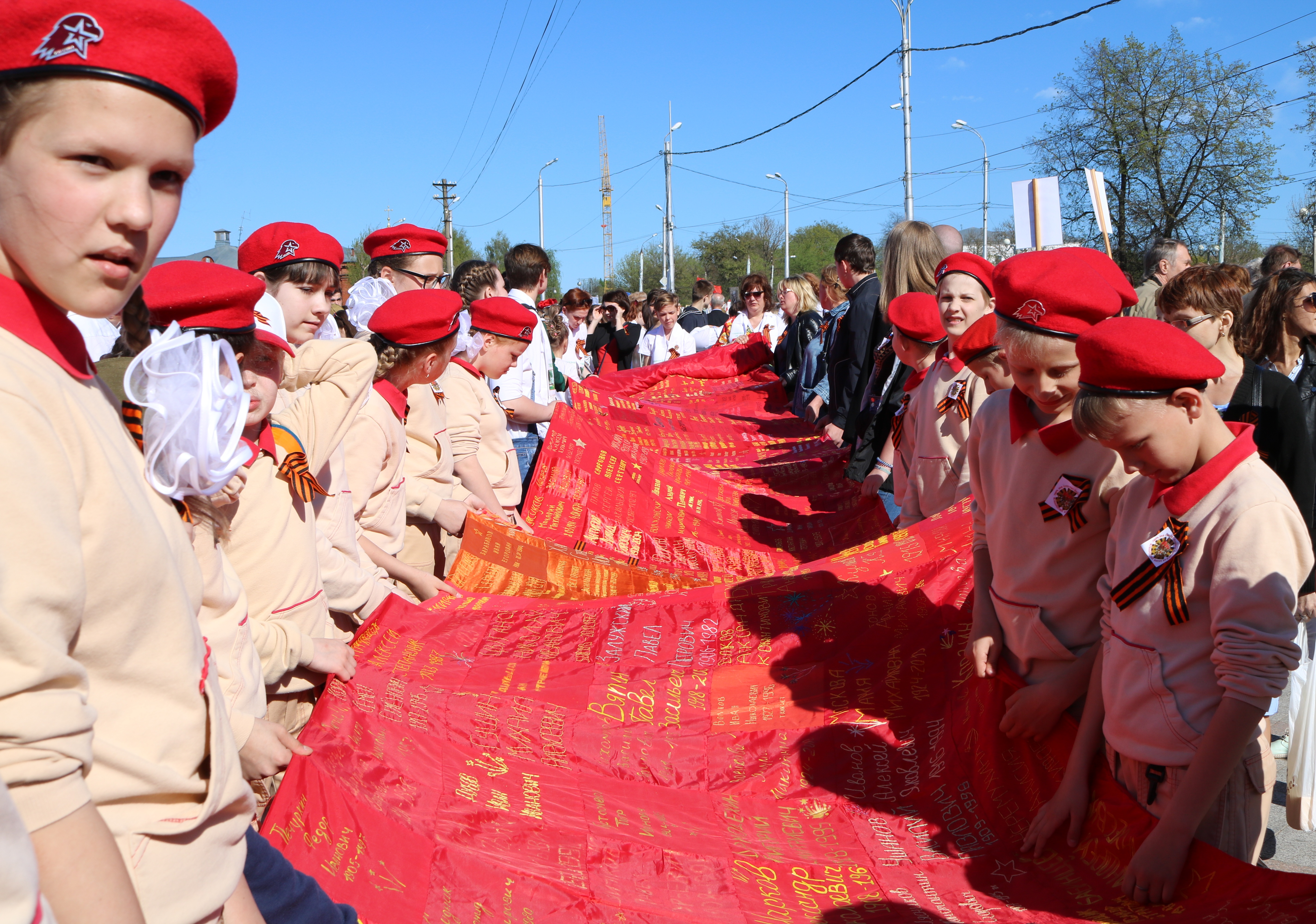 Одним из самых ярких мероприятий 9 мая в Твери станет шествие Бессмертного полка. В его рамках по традиции тверские школьники пронесут Полотно Памяти, сшитое детьми из «солдатских платков» с именами фронтовиков.