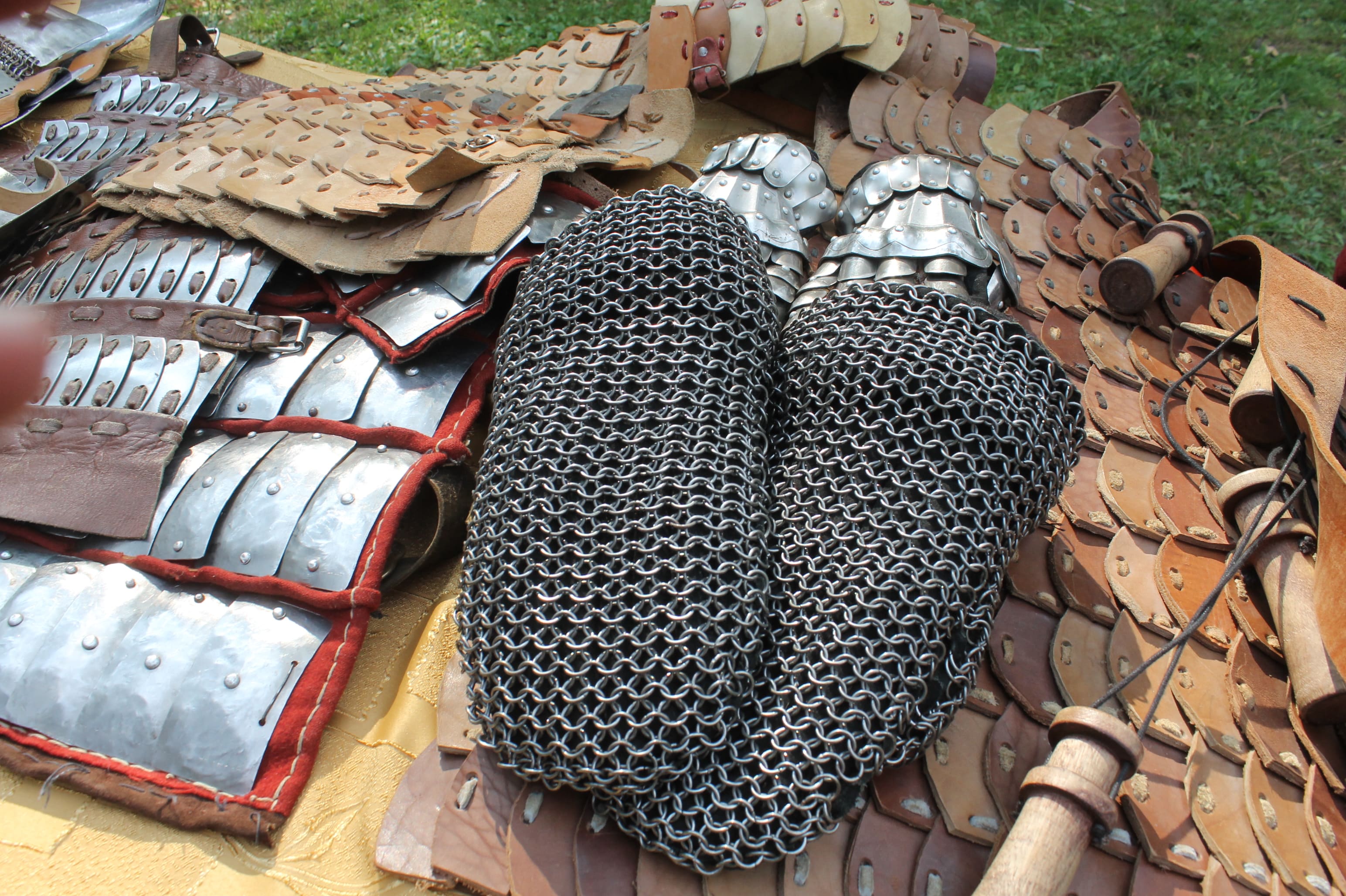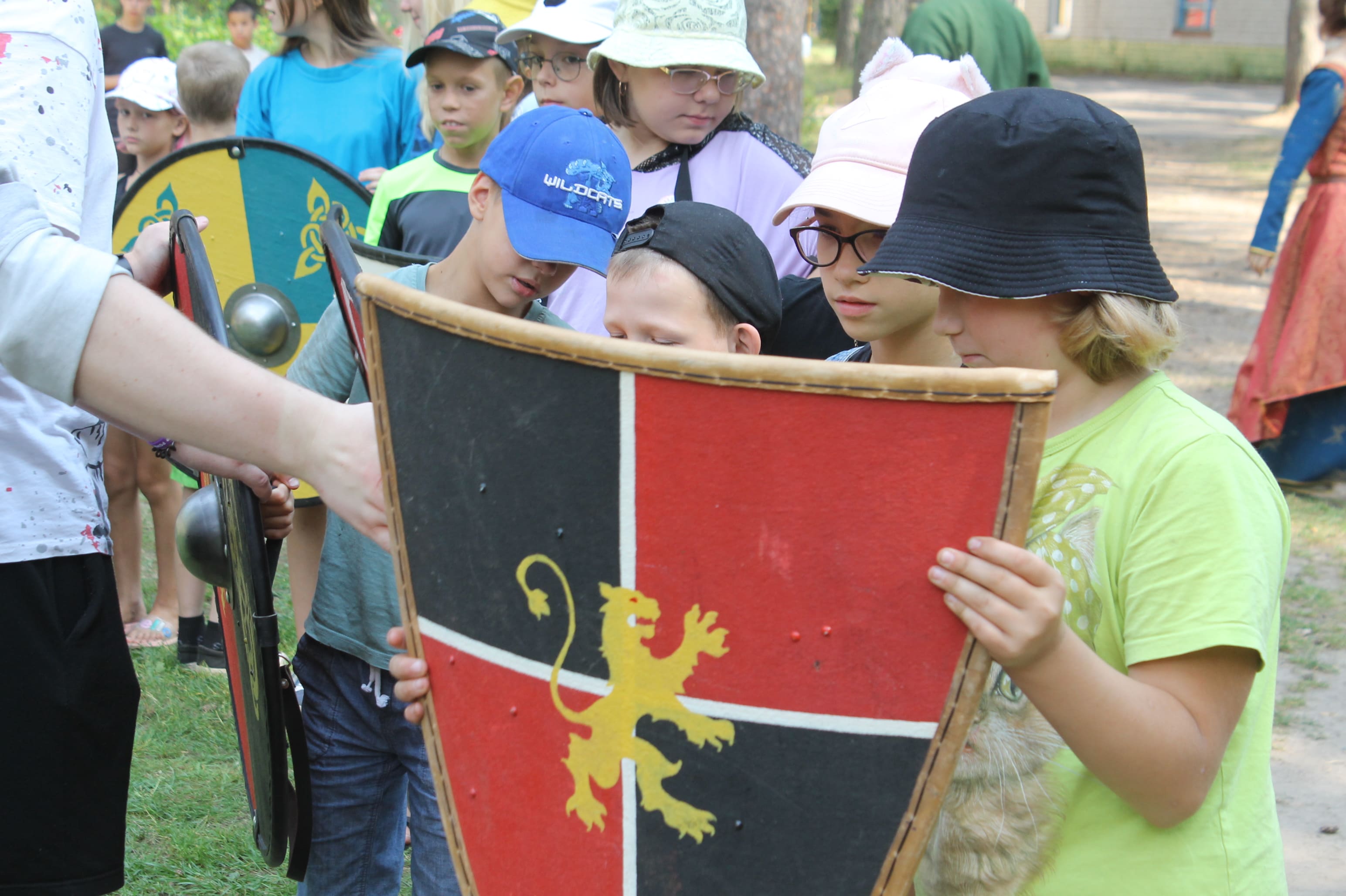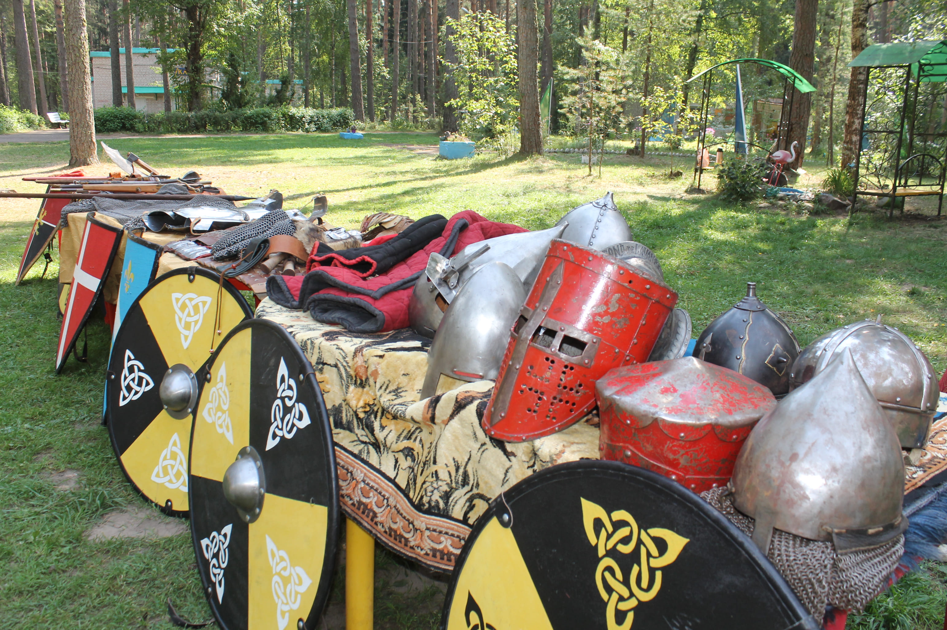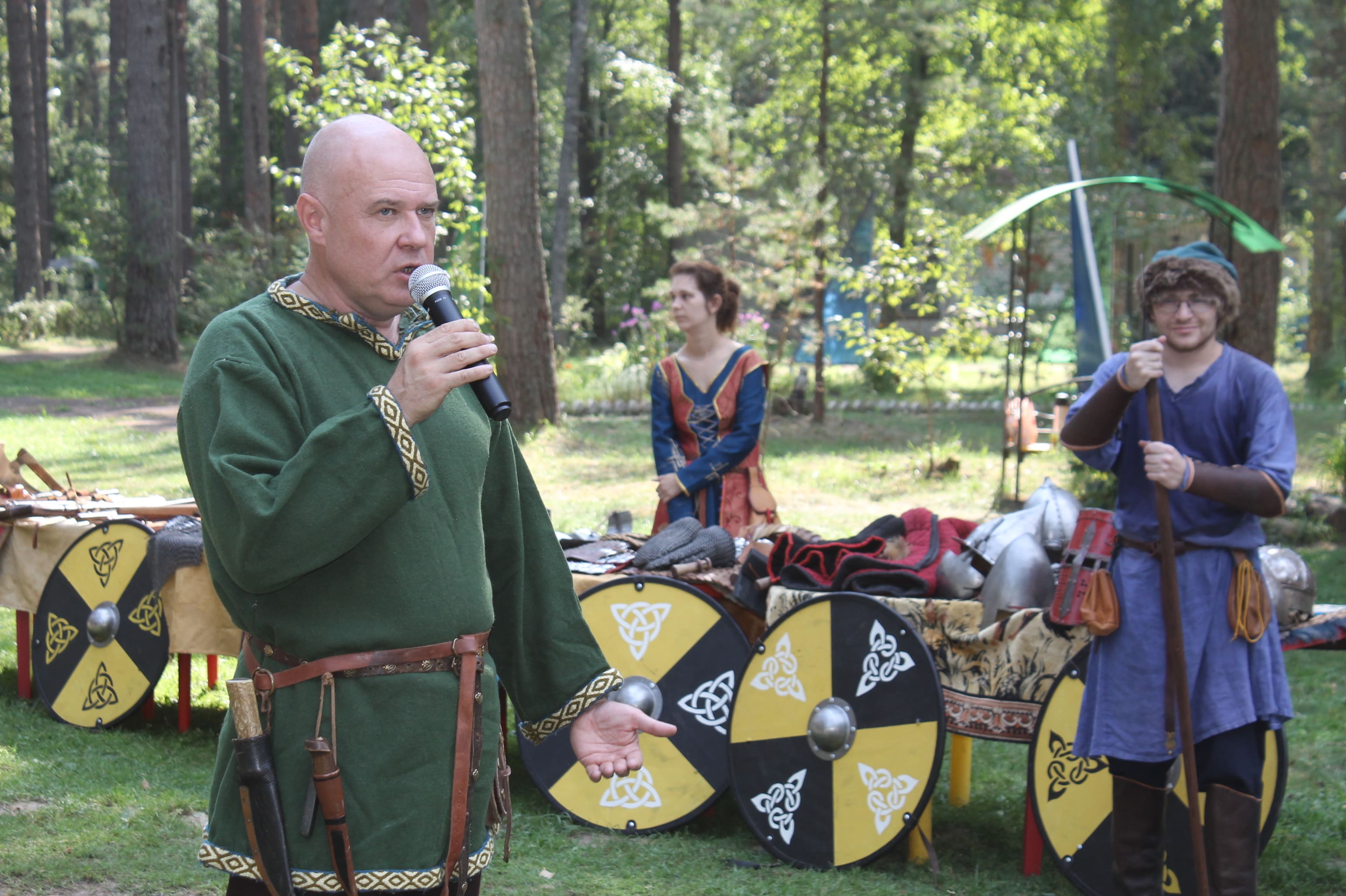 Кроме образцов вооружения и обмундирования, посетителей выставки также познакомили с навыками строевого боя с использованием щитов, которые применяли военные дружины.