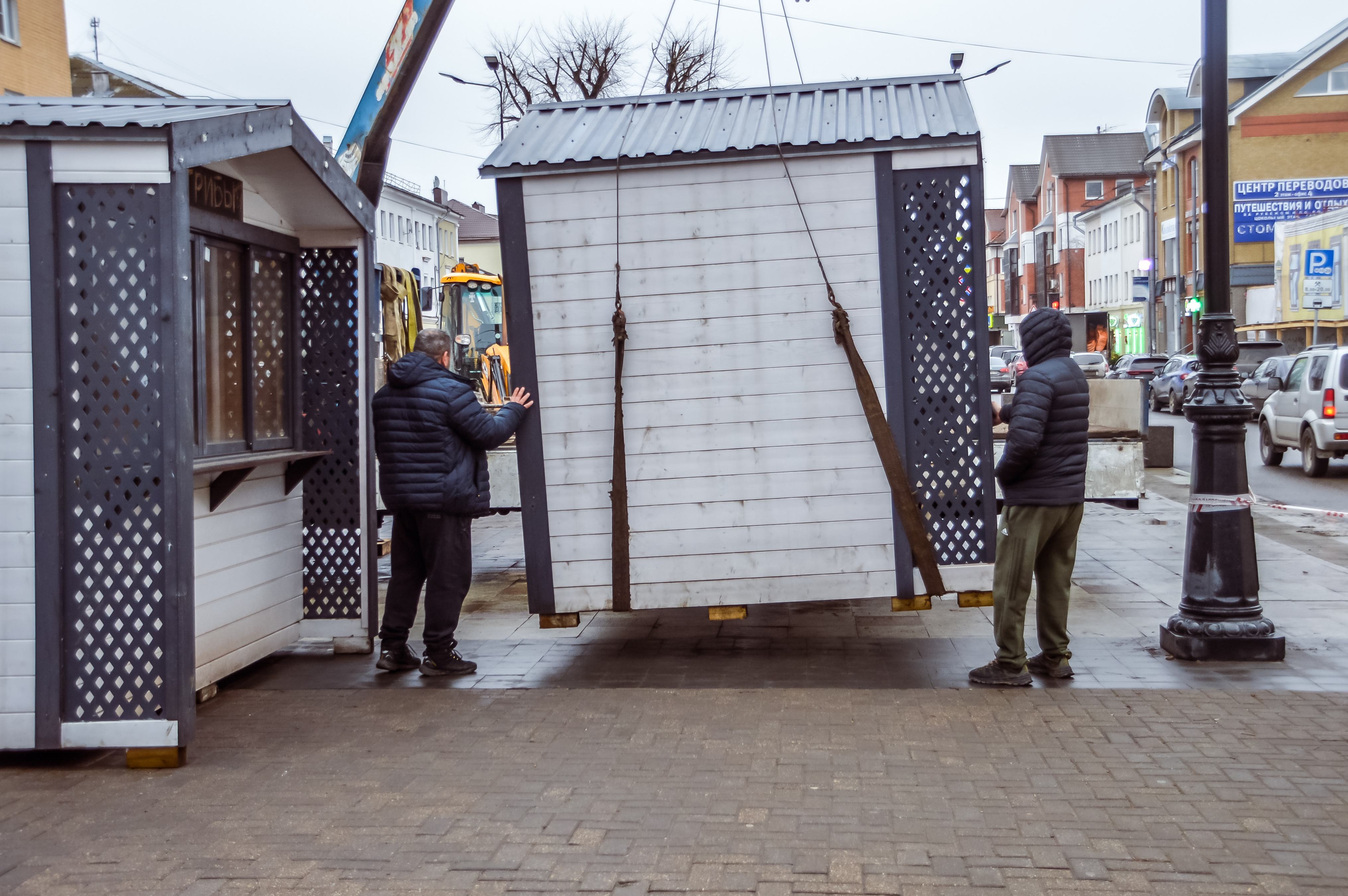 На бульваре Радищева в Твери начались работы по установке домиков для праздничной торговли на традиционной Рождественской ярмарке.