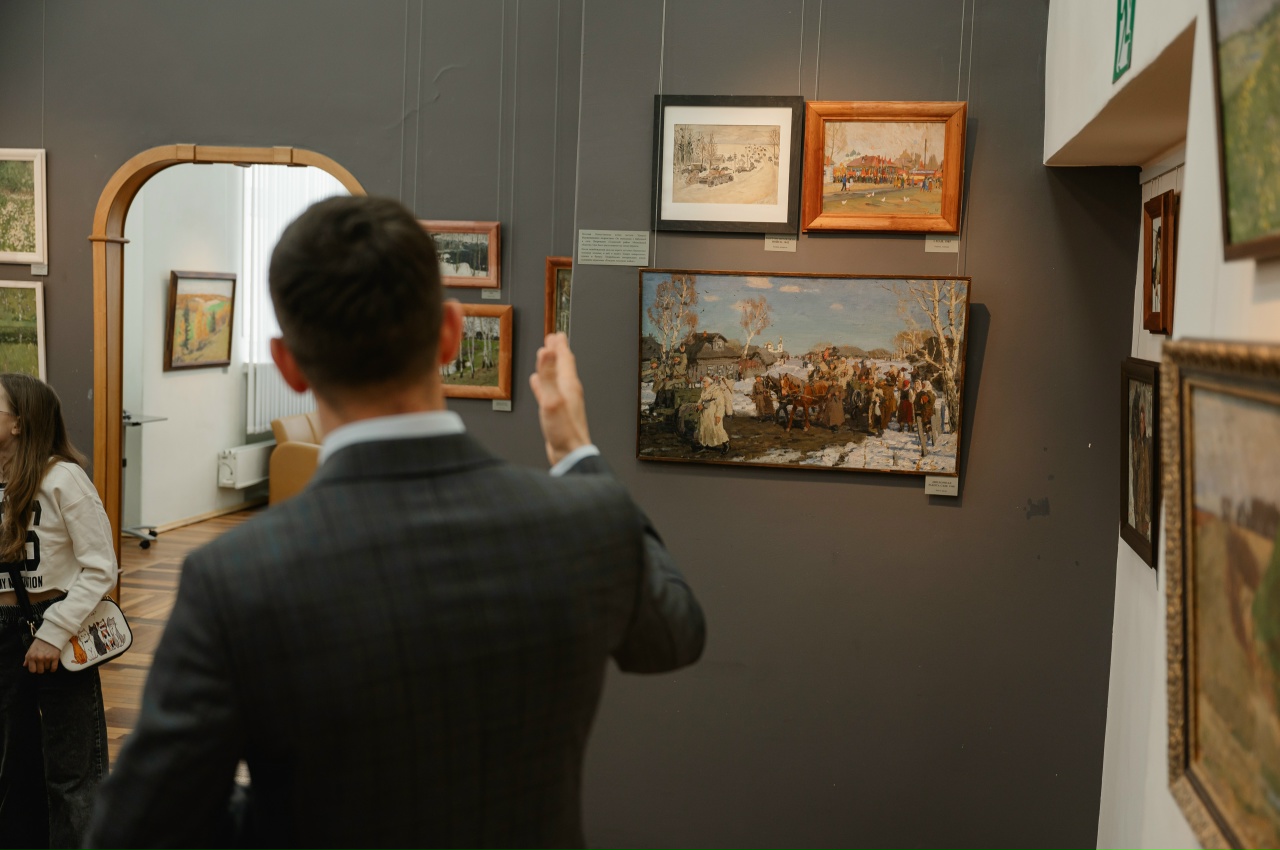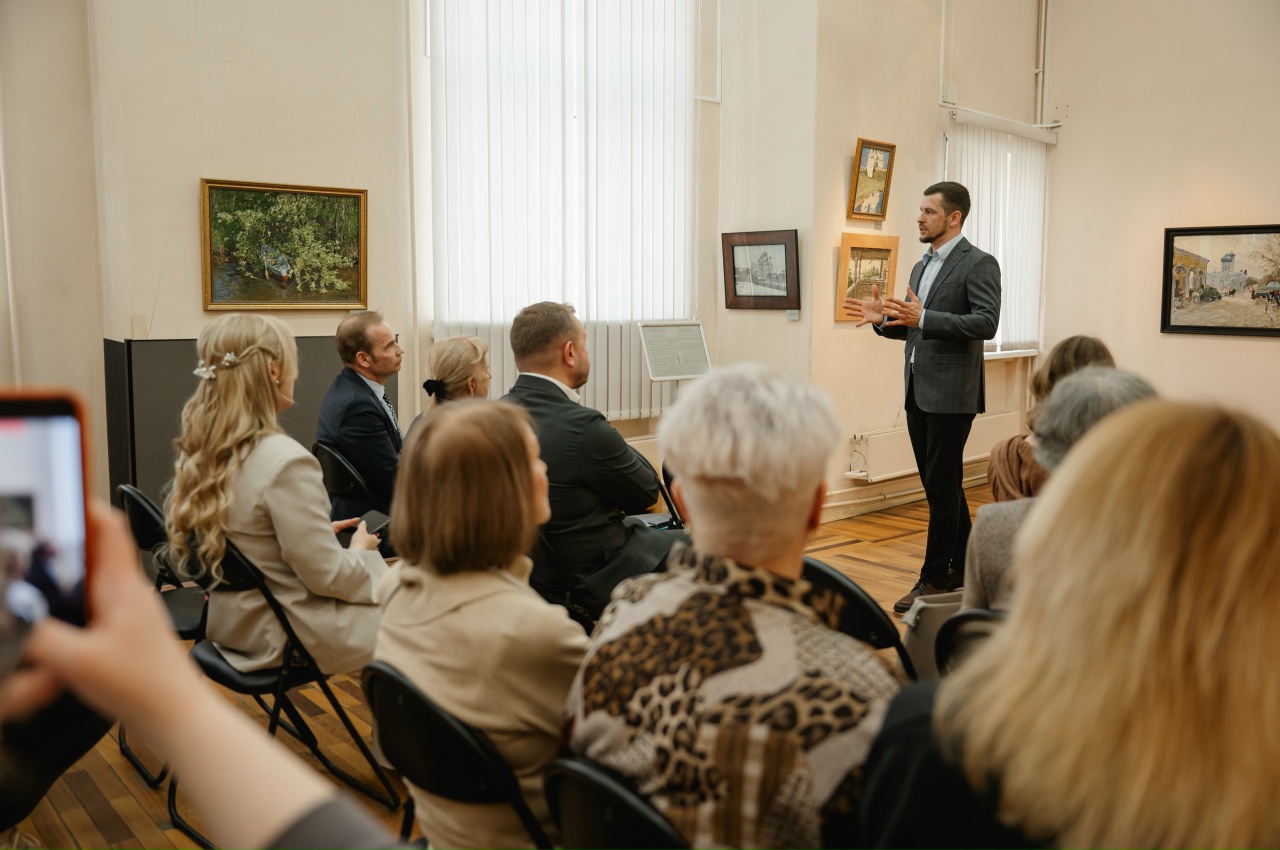 Экспозиция объединяет произведения, посвященные городам Золотого кольца (Ярославль, Сергиев Посад, Суздаль), а также Пскову, Великому Новгороду, видам Москвы и Ленинграда. Особое место в наследии художника занимает город Тутаев на Волге, где он жил и работал более 40 лет. Именно здесь были созданы сотни полотен, включая городские пейзажи и интерьеры. Здесь же он выступил инициатором установки бюста художнику Борису Кустодиеву, чье творчество оказало на него огромное влияние.