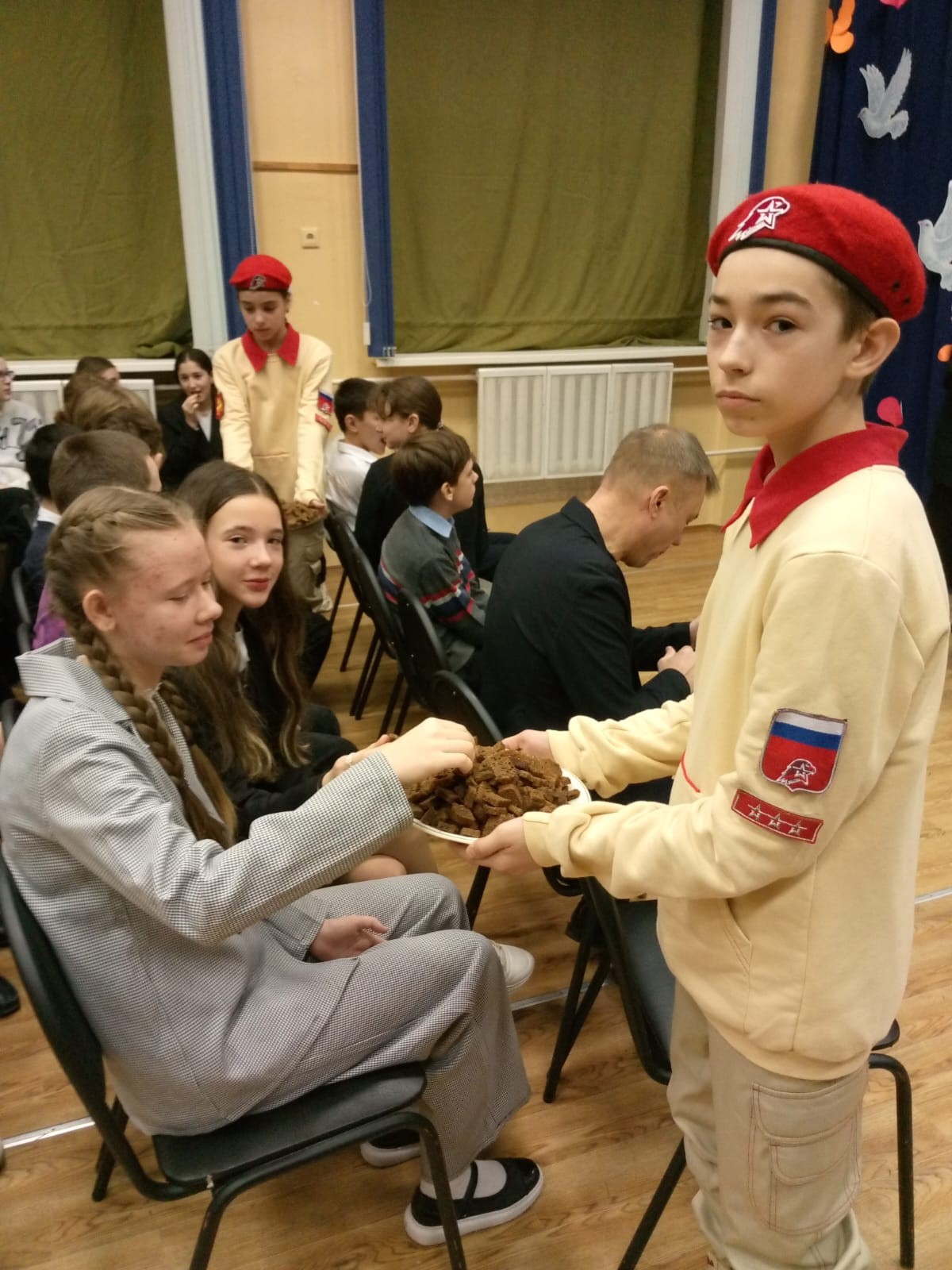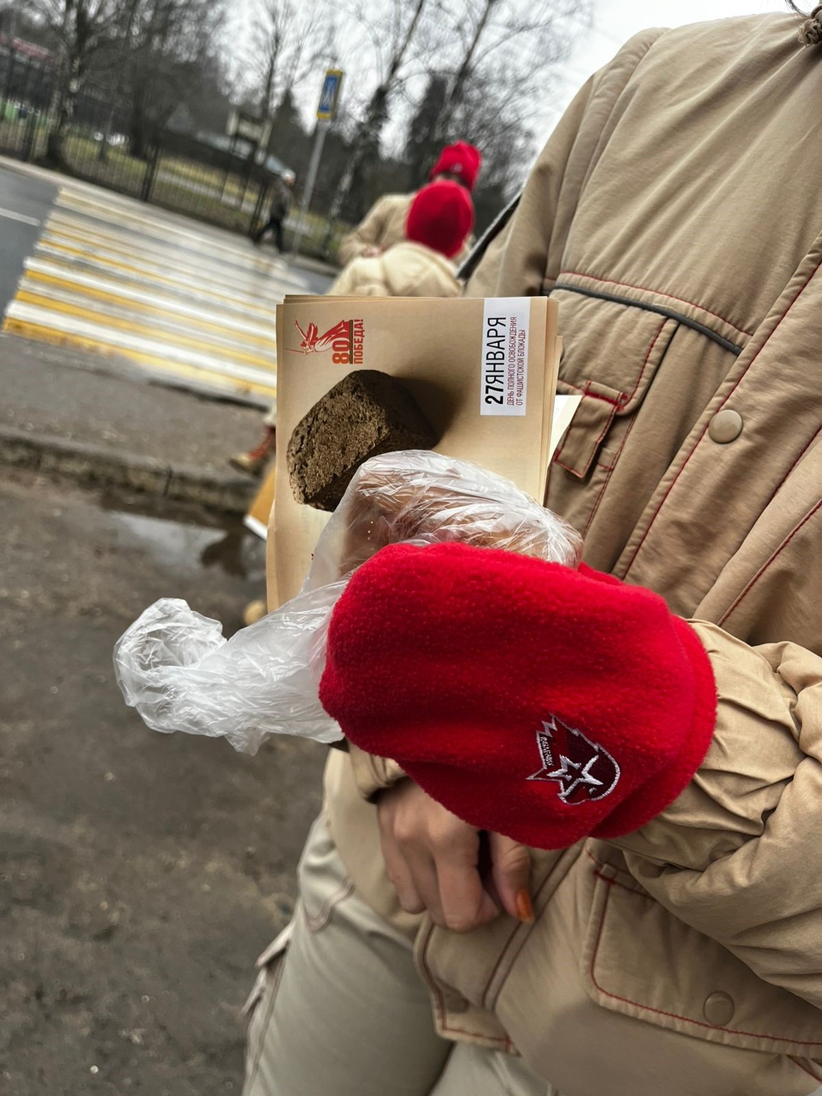 В микрорайоне Мигалово ребята из юнармейского отряда "Патриоты" МБОУ СШ №19 провели патриотическую акцию "Блокадный хлеб" для жителей района. В рамках этой акции все желающие получили символический кусочек хлеба и карточки с информацией о различных фактах того времени.