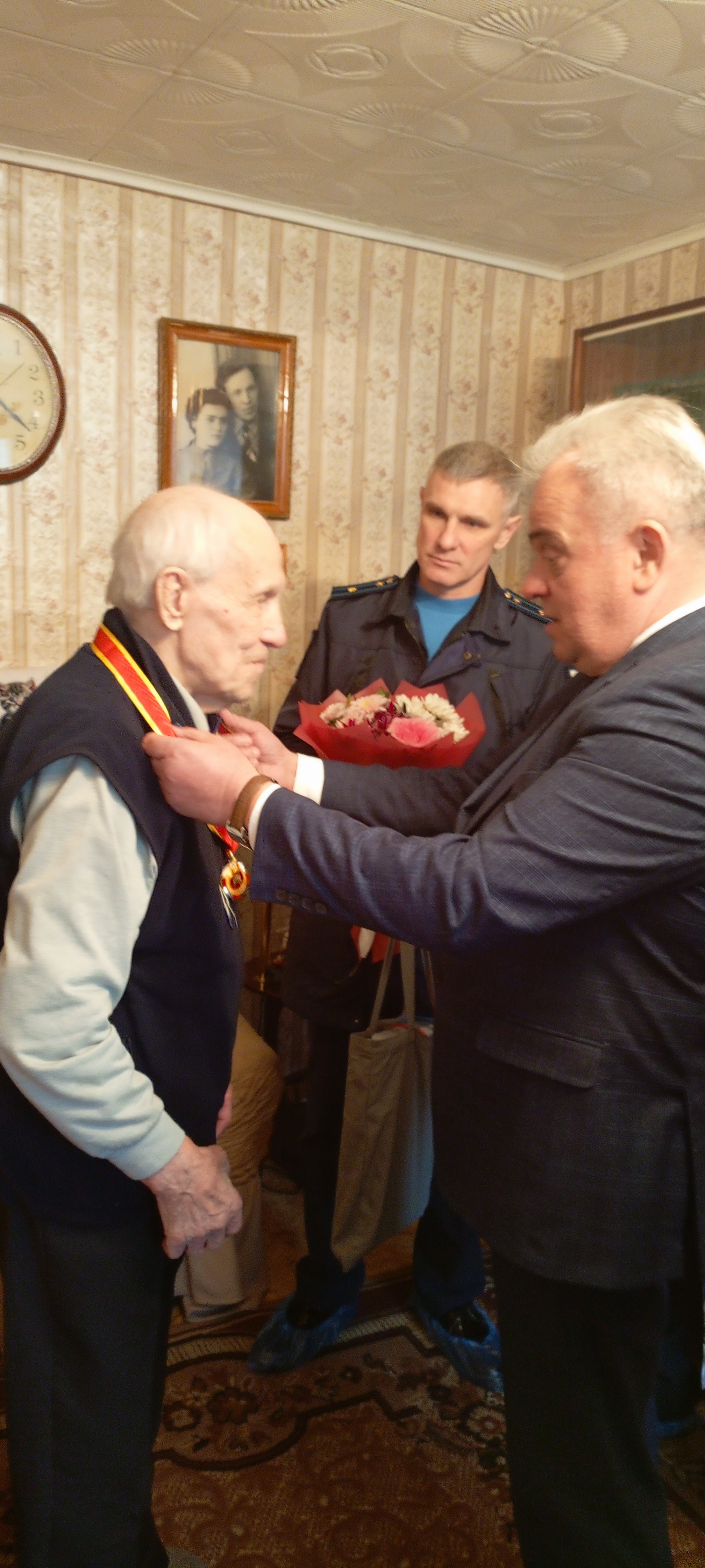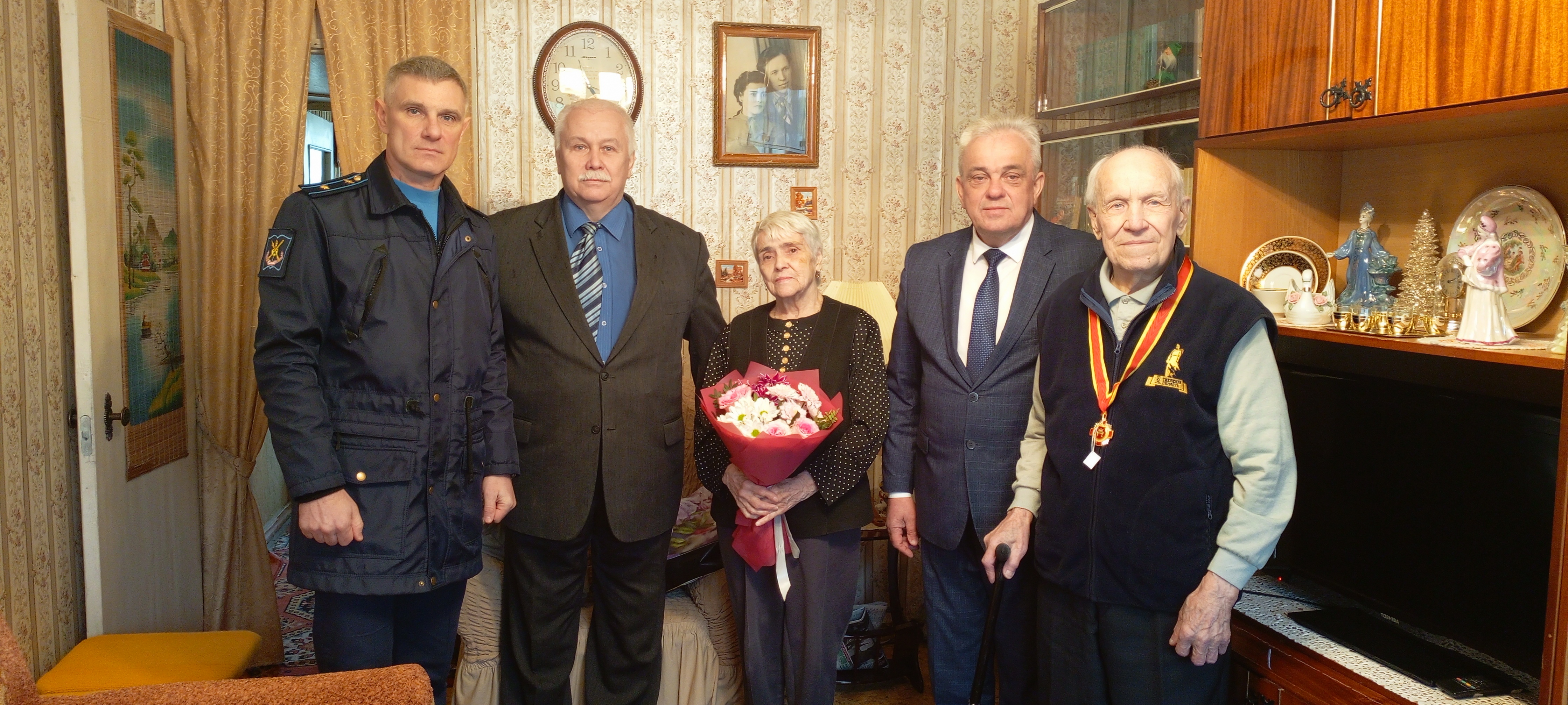 Ветеранов награждали на дому: депутат Тверской городской Думы Ануфриев Юрий Владимирович, глава администрации Заволжского района в городе Твери Лецин Богдан Михайлович, заместитель командира по военно-политической работе военной академии ВКО им. Маршала Советского Союза Г.К. Жукова Майоров Дмитрий Александрович.