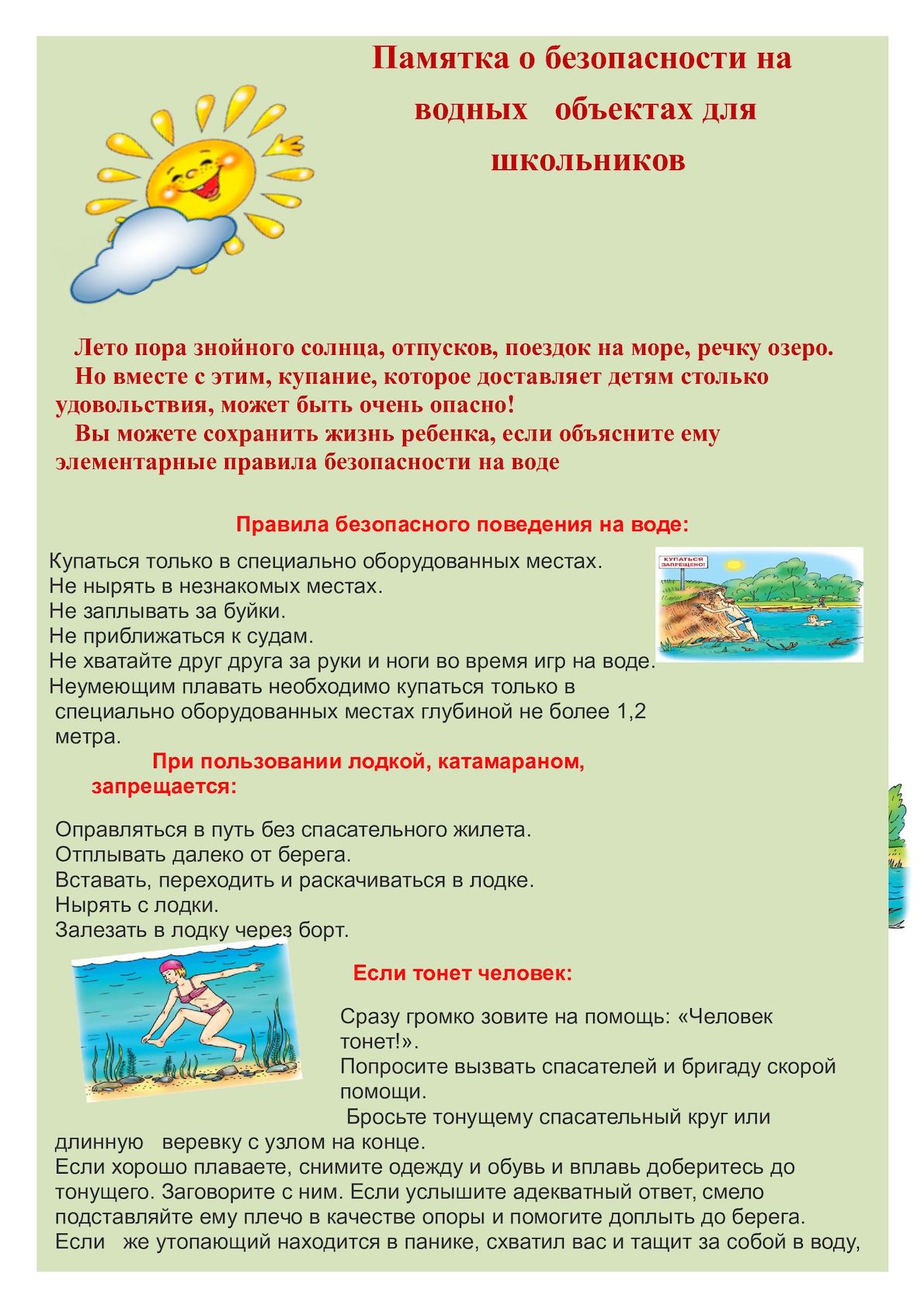 Памятки по безопасному поведению на воде летом 201904.02.2019