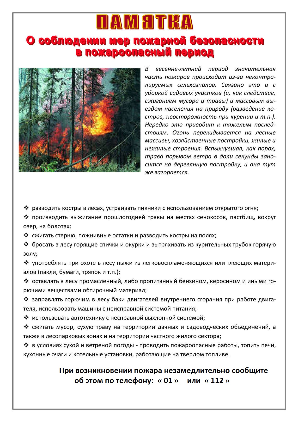ПАМЯТКА о мерах пожарной безопасности в пожароопасный период20.03.2018