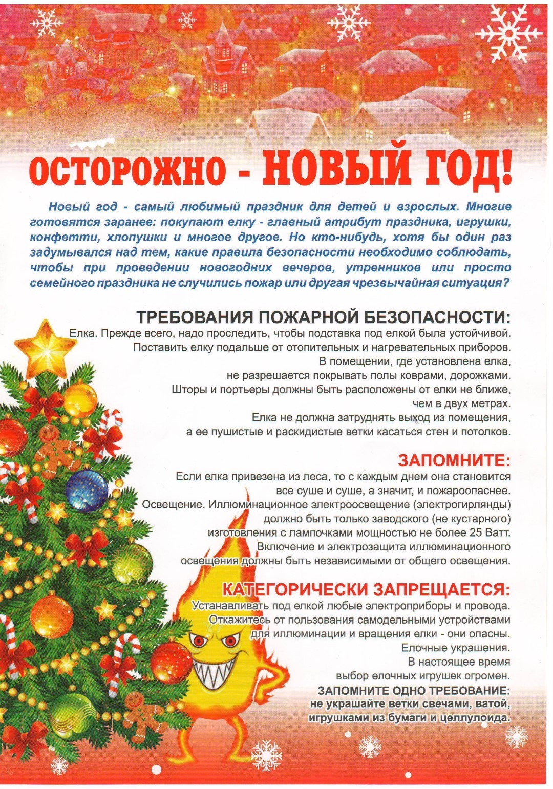 О мерах пожарной безопасности в Новый год и Рождество18.12.2024