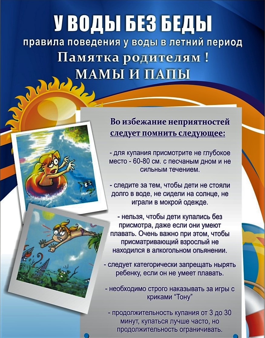 У воды без беды09.06.2025 Памятка о безопасности на водоёмах в летний период Основные правила безопасного поведения на воде