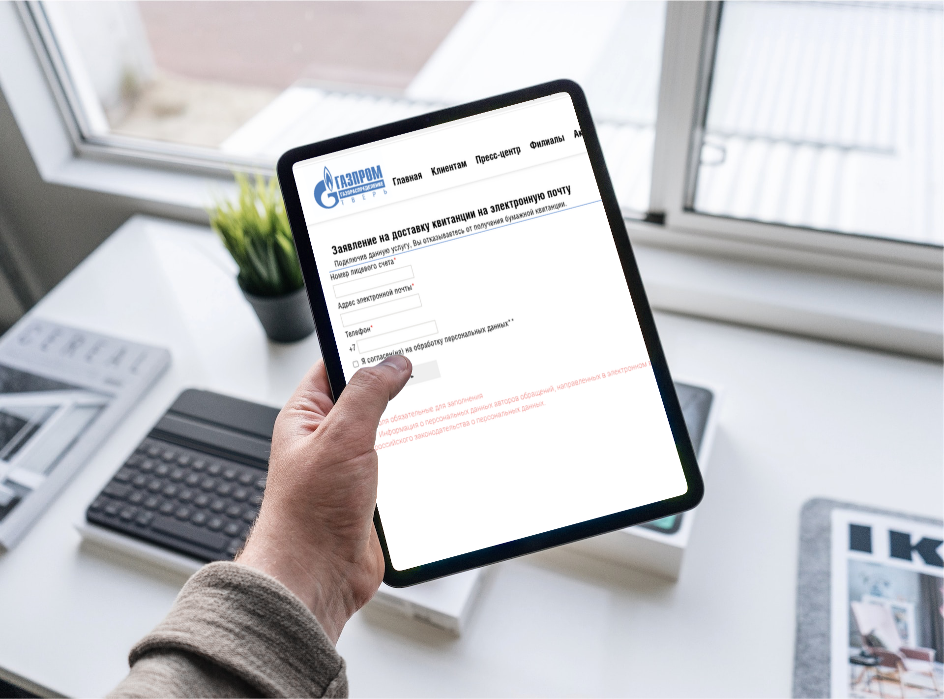 На сайте «Газпром газораспределение Тверь» - кликнуть иконку с надписью «Подключить электронную квитанцию».