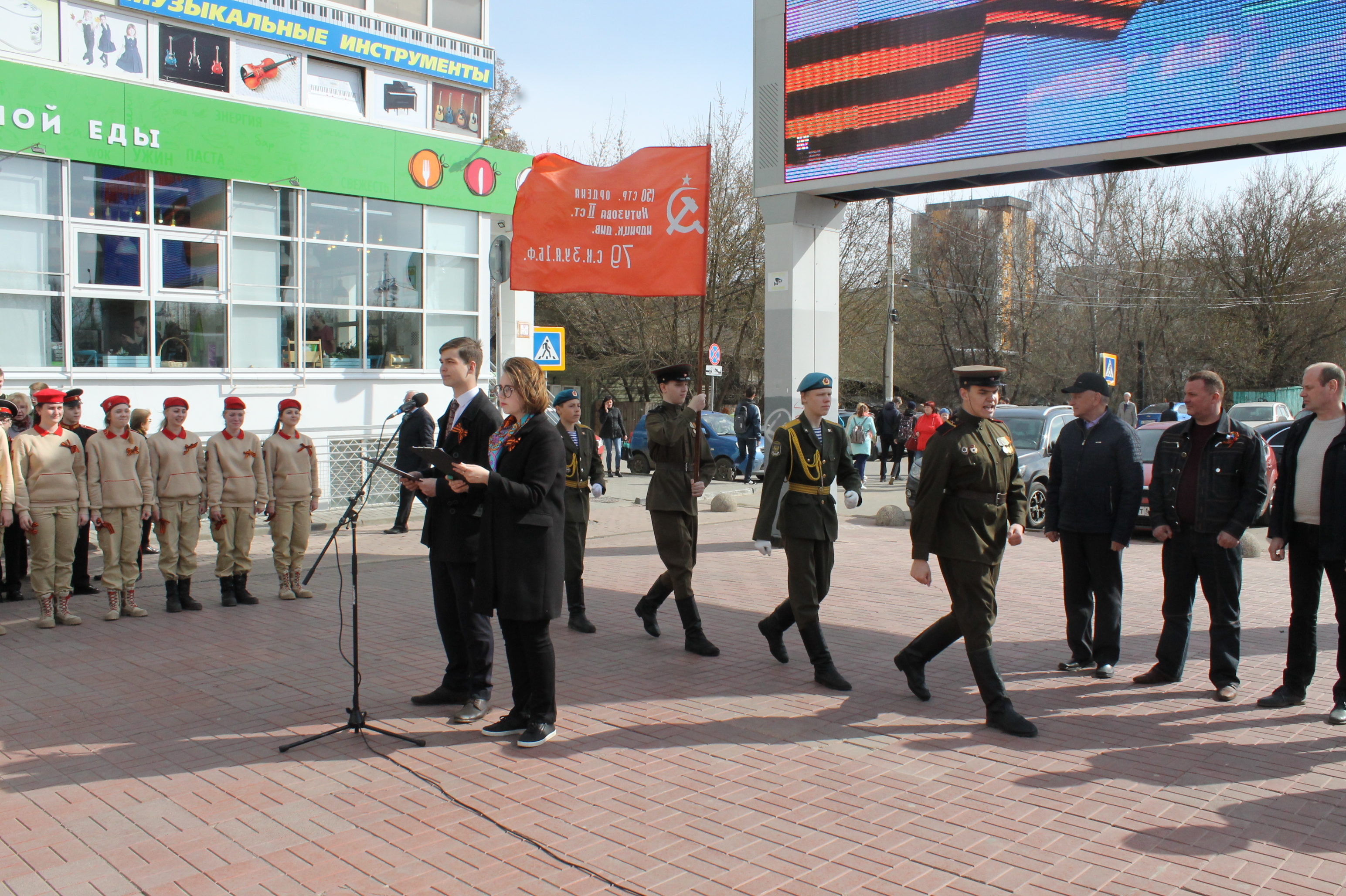 – В годы Великой Отечественной войны цвета Гвардейской ленты, цвета ордена Славы, всегда наполняли нас гордостью и вели в бой, – сказал он. – И сейчас мы передаём цвета этой ленты вам, молодому поколению, чтобы вы носили эти ленты, помнили о подвиге советских солдат и гордились им. И наша Родина всегда будет непобедимой!
