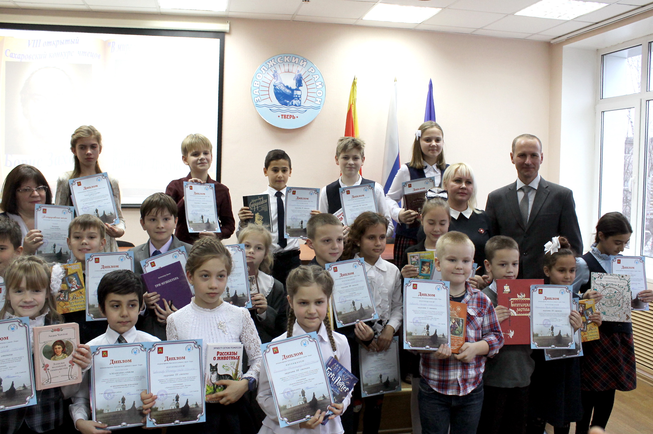 16 ноября в администрации Заволжского района города Твери прошло торжественное награждение победителей VIII Сахаровского конкурса чтецов «В мире шуток и фантазий», посвящённого творчеству детских писателей Бориса Заходера и Виктора Драгунского.