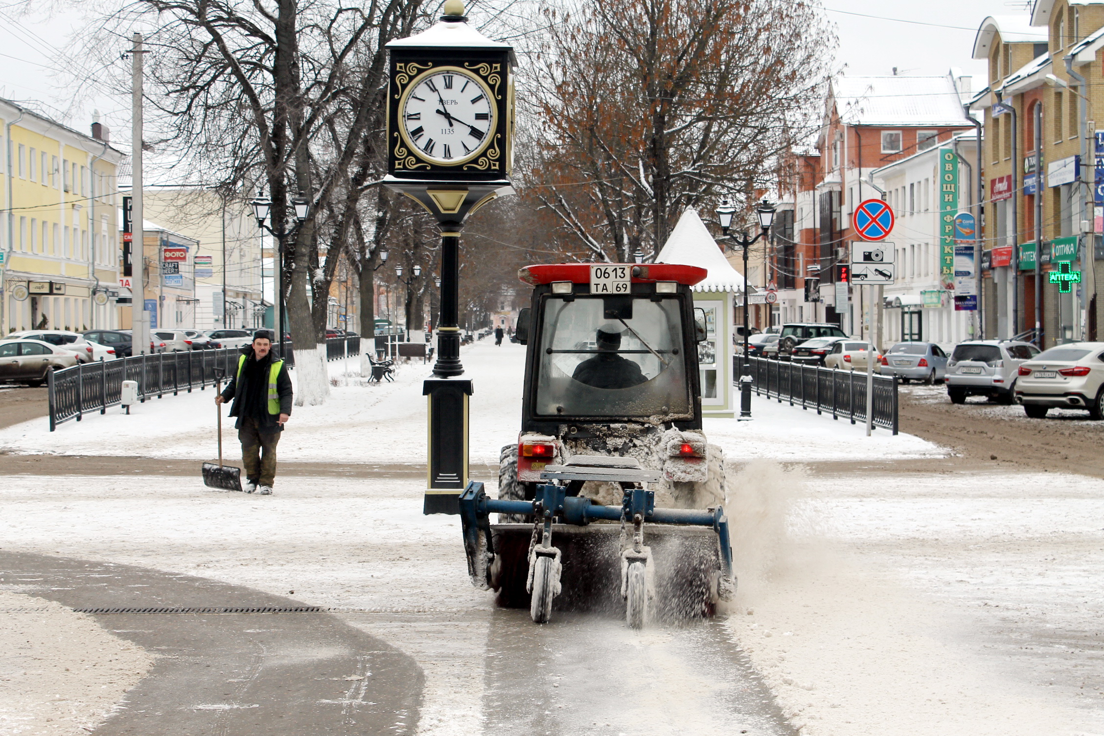 10 декабря на улицах Твери работает 23 комбинированные дорожные машины, 21 КДМ задействованы в обработке улично-дорожной сети песчано-соляной смесью и противогололедными материалами, 2 машины вывозят снег с центральных улиц города. Расчистку тротуаров осуществляют трактора и «Чистики».