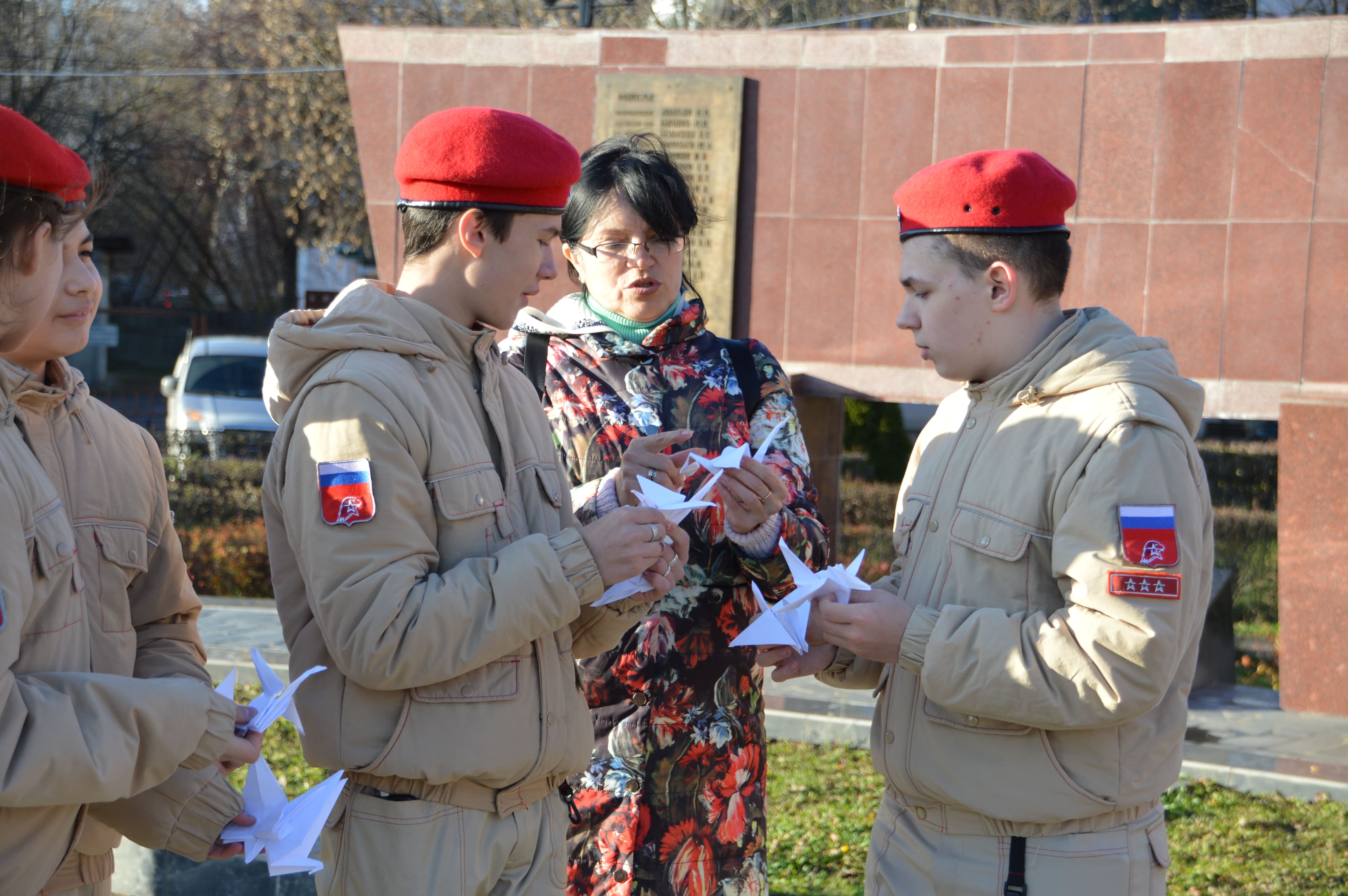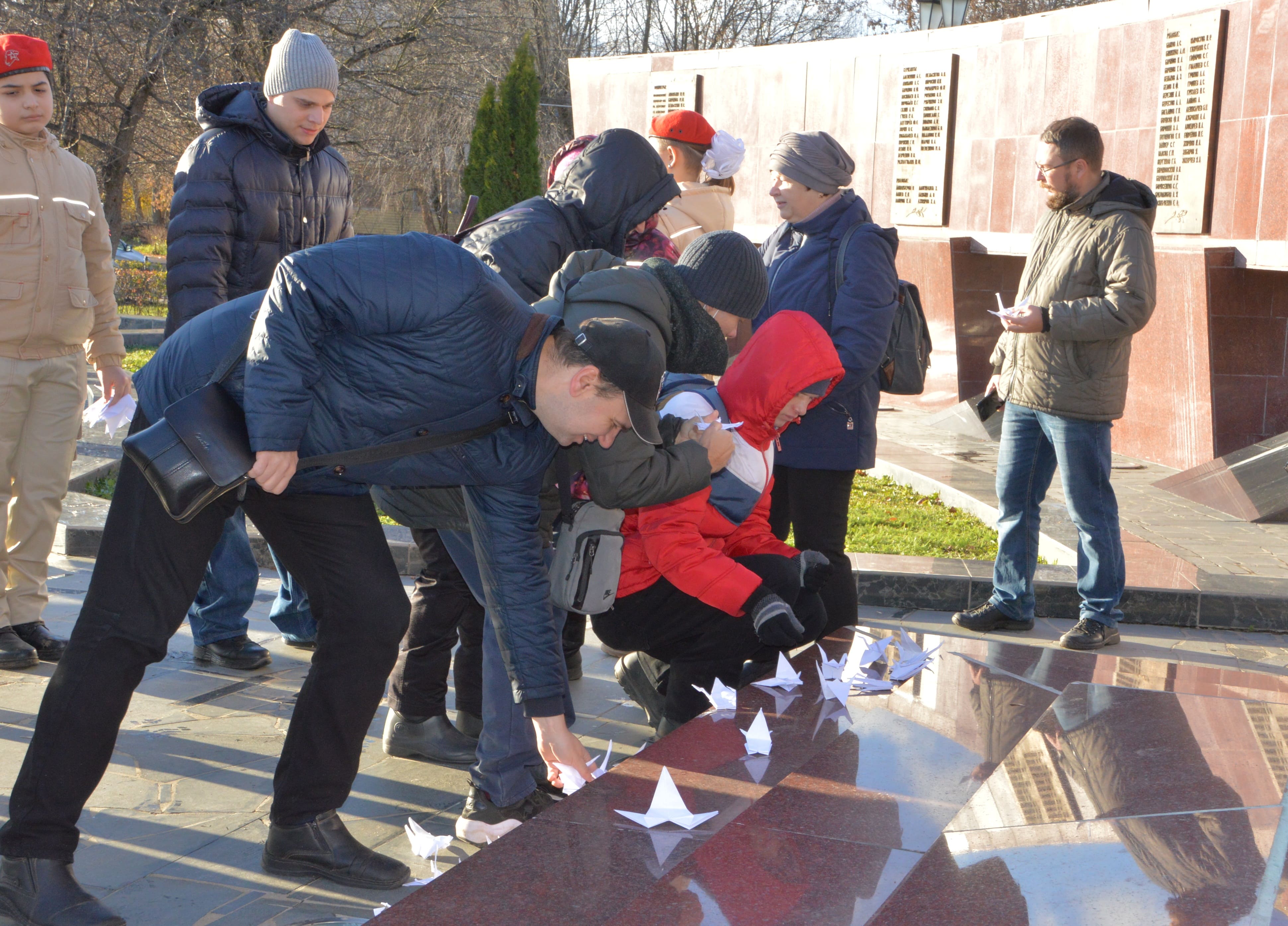 Акция «День белых журавлей» направлена на нравственно-патриотическое воспитание подрастающего поколения, сохранение памяти о мужестве и героизме и привлечение внимания молодежи к памятным датам. Участники акции «День белых журавлей» почтили память погибших минутой молчания и возложили к мемориалу цветы и белых журавлей - бумажный символ здоровья, добра и мира.