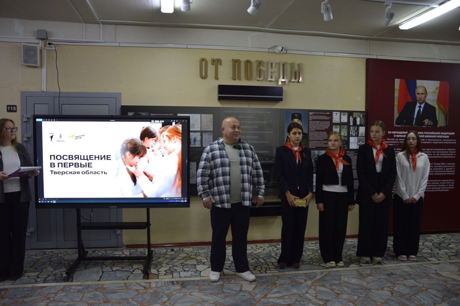 Церемонии посвящения проходили по всех тверских школах. Так, на одной из торжественных линеек в МБОУ СШ № 53 в ряды «Движения первых» вступили 136 пятиклассников. Школьников приветствовал секретарь Совета регионального отделения «Движения Первых» Тверской области Аркадий Перведенцев.