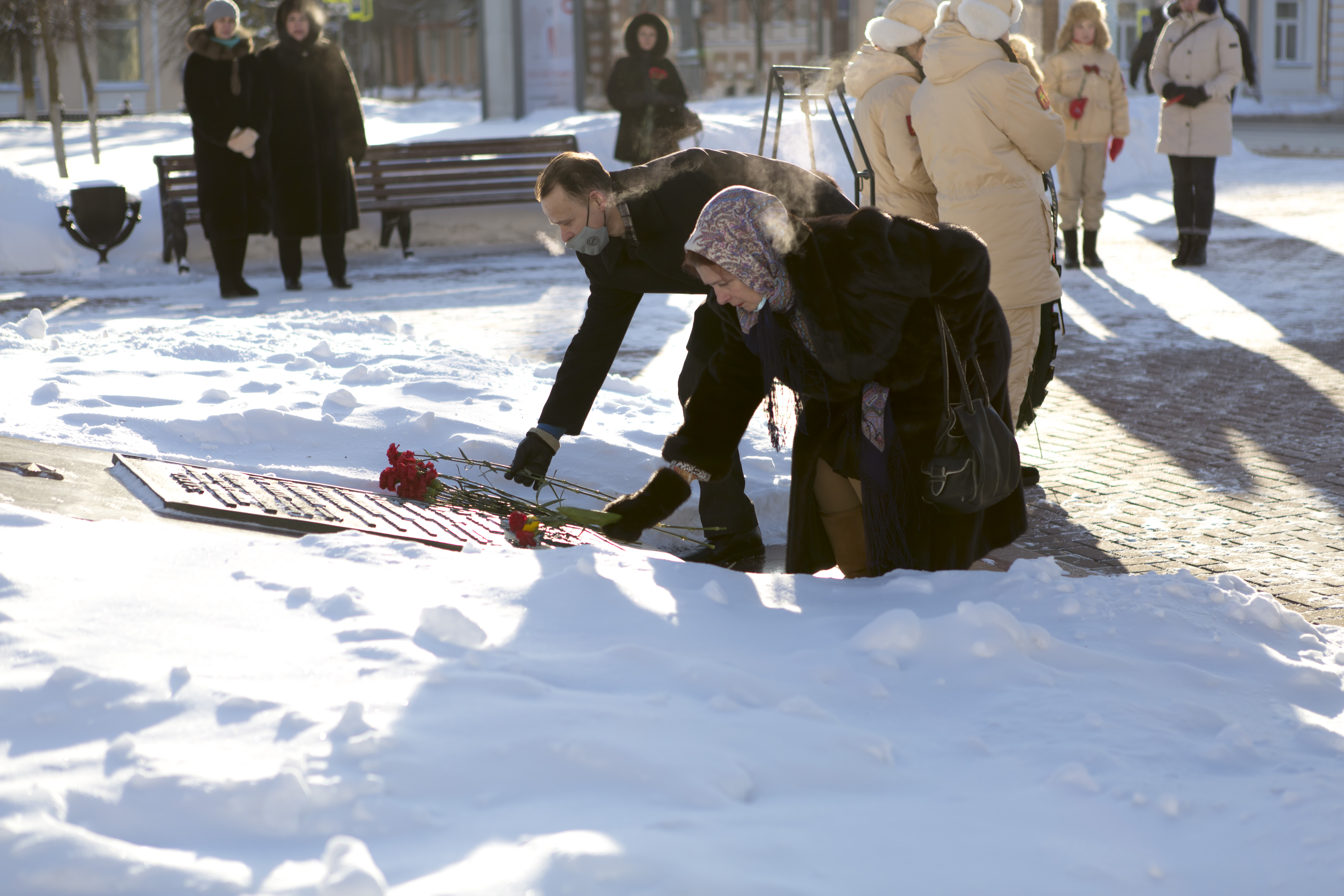 23 февраля 2021 года в День защитника отечества состоялась церемония возложения цветов и венков к братскому захоронению на площади Ленина.