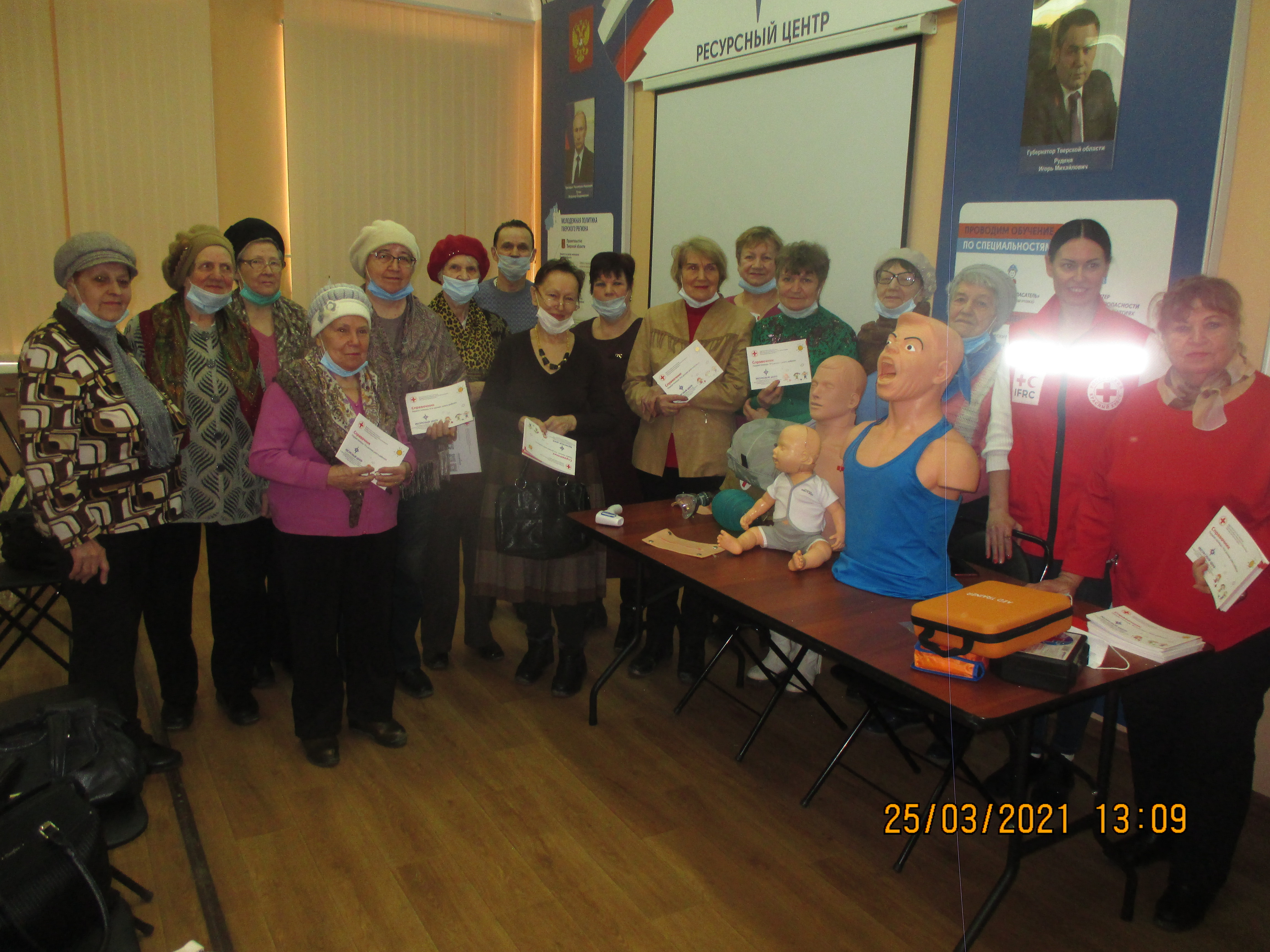 25 марта 2021 года для актива руководителей общественного самоуправления, ветеранских общественных организаций и клубов пенсионеров Центрального района города Твери ресурсным центром по поддержке добровольчества в сфере культуры безопасности и ликвидации последствий стихийных бедствий в Тверской области был организован обучающий семинар. Вначале участникам семинара рассказали о деятельности центра, ключевым направлением деятельности которого является обучение добровольцев-спасателей навыкам поиска людей, оказания первой помощи, проведение мероприятий по популяризации добровольчества в сфере безопасности и ликвидации последствий ЧС, затем провели экскурсию по учебным аудиториям. С теплыми словами приветствия и благодарностью за активную жизненную позицию к собравшимся обратился заместитель директора ГБУТО «Областной молодежный центр» Иванов Евгений Валерьевич.
