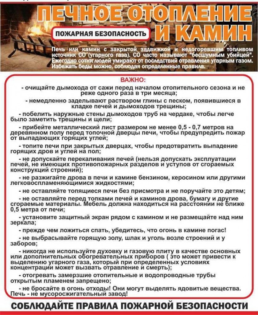ПАМЯТКА о соблюдении населением правил пожарной безопасности в быту в отопительный сезон20.03.2018